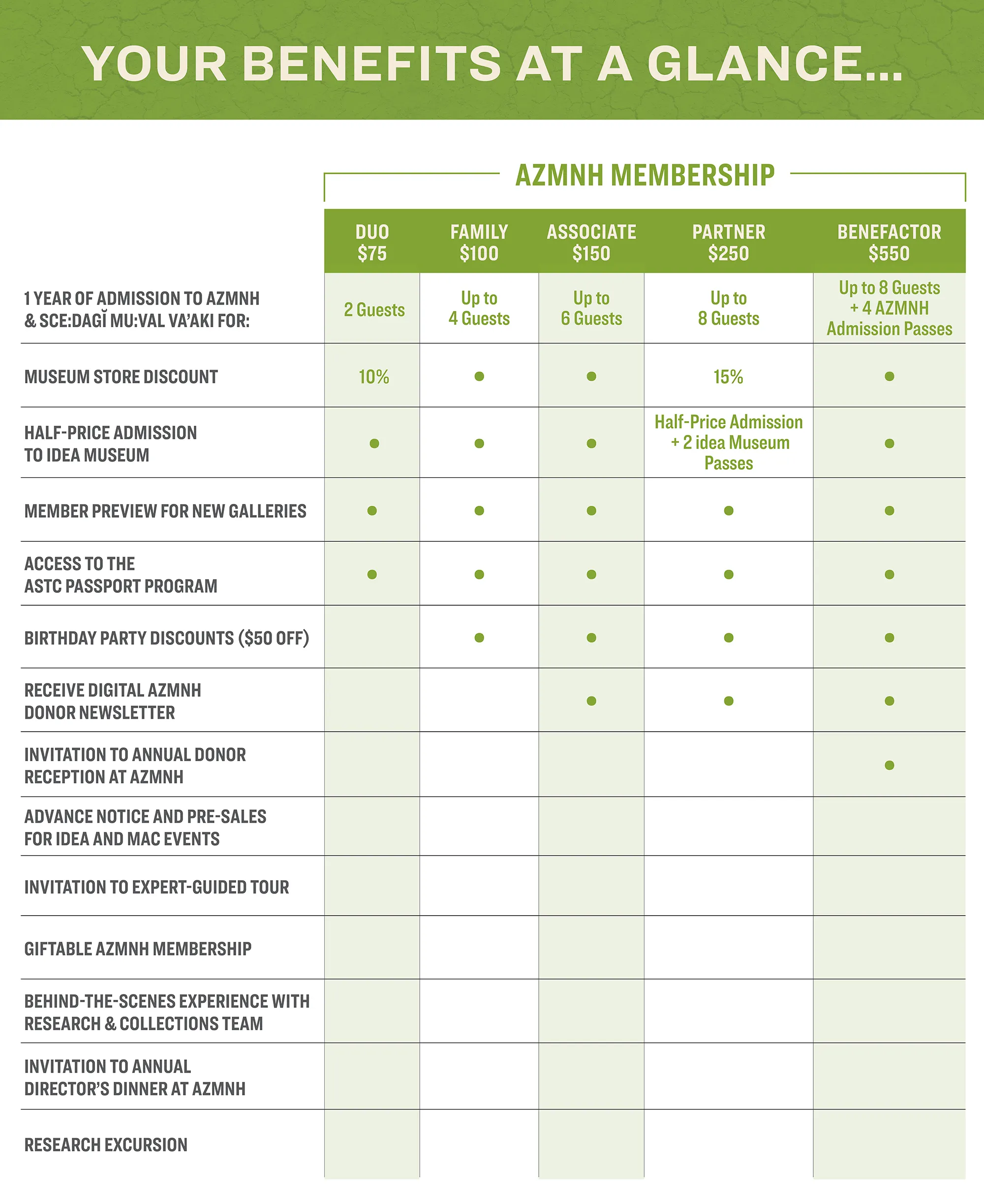 - 1 Duo membership to AZMNH to gift